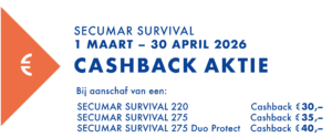 Schaf je in de actieperiode (1 Maart – 30 April 2026) een SECUMAR SURVIVAL reddingsvest dan aan kun je je registreren voor de cashback aktie.
